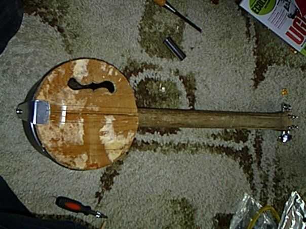 4 cadena a diddly-bo de mi favorito pan viejo, un viejo mango de hacha y parte de un cajón de naranjas.