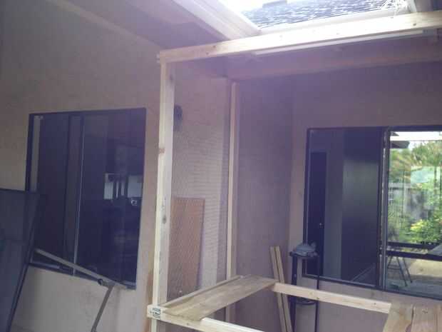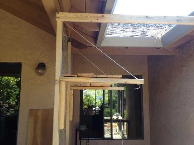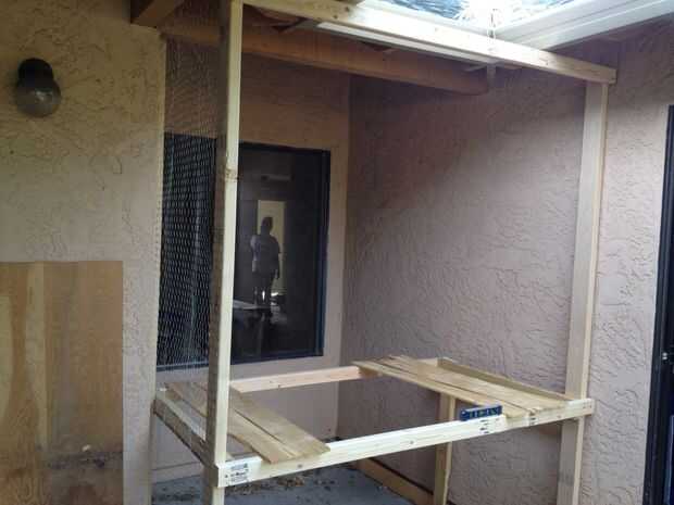 Y ahora en el 2 x 3. Usé estos para acabar en los suelos elevados. Conectado cada uno a la H y apoyado a través de los soportes de la plataforma para hacer agradable rinconcito para las bolas de pelo poco empaparse de sol.