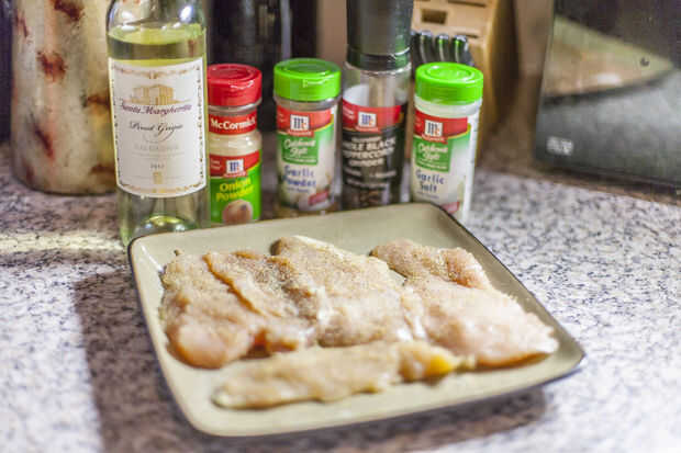 Asegúrese de que temporada ambos lados de las pechugas de pollo con todas las especias se muestran y enumeran. Una cucharadita de cada uno es derecho para la mayoría de las preferencias, pero siéntase libre de añadir o restar en esta etapa.