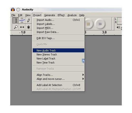 Para comenzar nuestro pequeño proyecto, simplemente haga clic en proyecto -> pista de Audio nueva.