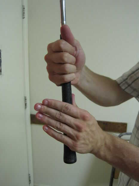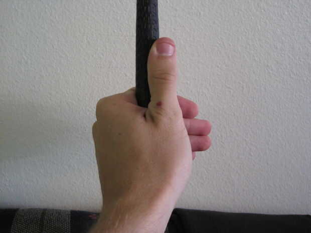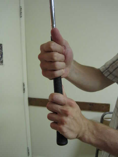 1. Agarre el club por primera envoltura pulgar de mano izquierda en el club, intentando mantener los dedos todavía extendidos.