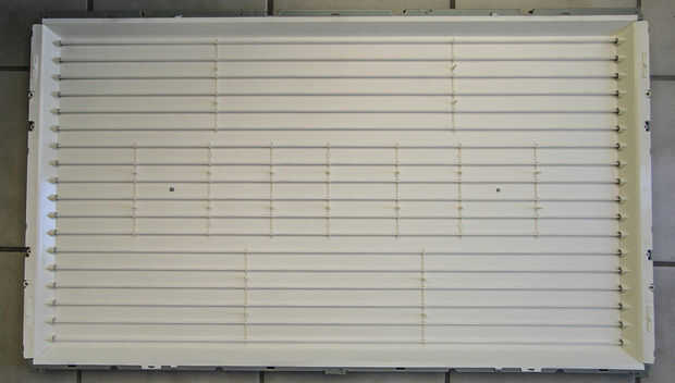 - Usted verá una placa de metal trasera con agujeros. A través de esos agujeros, probablemente verá hojas blancas. Ésos son los difusores y estamos tratando de llegar a los. Desenroscar los tornillos que sujetan la placa juntos y quite la placa. Para ello, tenemos que sacar la cubierta plástica frontal por lo que tendrás que girar el televisor. Hacerlo con cuidado no quiere riesgo de dañar la pantalla LCD.