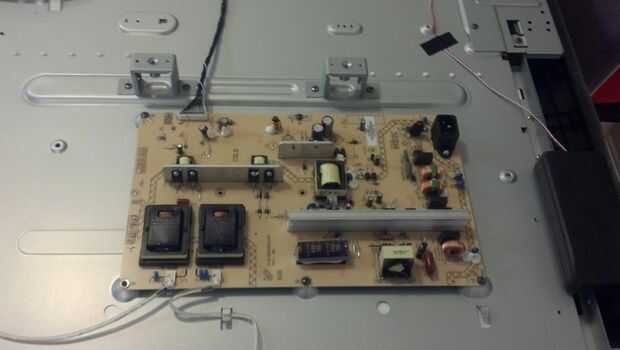- Power Board: Esta es la tabla de circuito de aspecto extraño. 98% del tiempo, será un color amarillo pardusco. Éste es el engorroso/más pesado de los tableros y alberga un par de condensadores, inductores y disipadores de calor. Más evidente es el tablero de suministro de energía ya que es donde se conecta el cable de CA a. Dato curioso: muchas veces, la gente va a reemplazar TV creen que se daña cuando el problema real sólo puede ser que un solo condensador ha fundido. Ya que uno de estos puede costar un par de centavos de dólar, es curioso cómo pagamos más de $400 para un arreglo de $1.