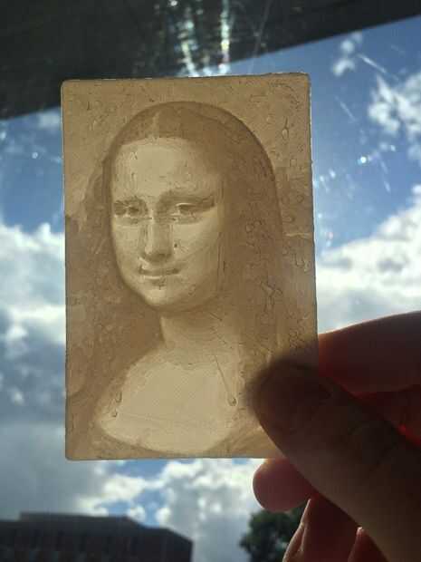 Litofania son una vieja técnica para hacer imágenes. Generalmente están hechos de porcelana y moldeados. Crea la imagen variando el espesor de un material translúcido. Cuando se enciende nuevamente el más grueso el área aparece más oscuro y el thiner más ligero.