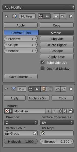 Vamos a añadir dos modificadores: multiresolución y desplazar.