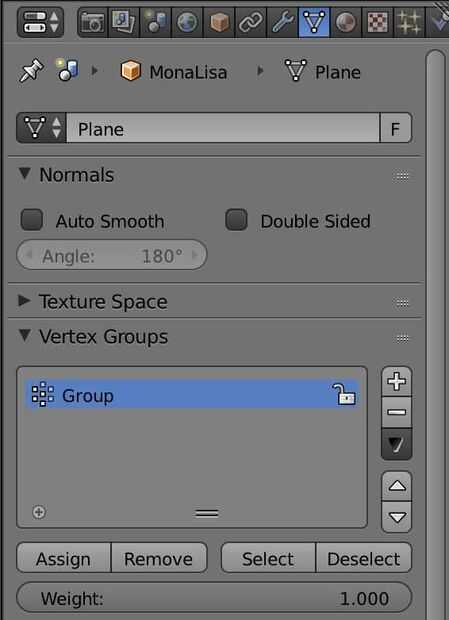 Asegúrese de que todo está deseleccionada (palanca presionando "A") para seleccionar sólo la parte superior puede presionar "B" para el modo de selección de caja y dibujar un cuadro que incluyen los vértices superior pero no el fondo. Una vez que esté seguro que tienes justo arriba, vaya al panel de Grupo Vértice , presione el signo más para crear un nuevo grupo y pulse asignar a añadir estos vértices. Ahora debe tener un grupo llamado "Grupo".