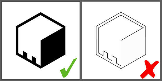 - Asegúrese de que las formas utilizan un relleno donde desee una depresión en su dado. Porque las líneas de vector realmente no tienen un ancho si no agregar un relleno, no tienen mucho que trabajar con.