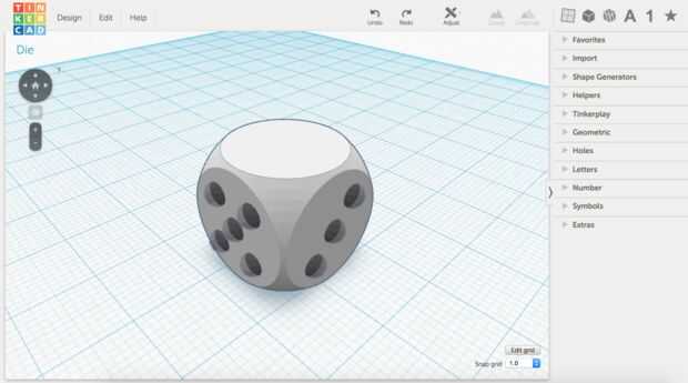 A la derecha de la página, hay formas por defecto uno de los cuales pasa a ser un dado en blanco. Arrástrelo a su red.