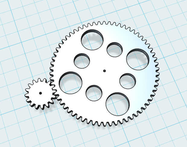Hay una proporción de 4:1 entre estos dos engranajes que pueden apilar estos dos engranajes para aumentar la relación de entrada/salida (o usted podría diseñar su propio).