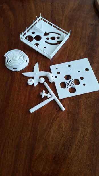 * se muestra arriba es mi primer trabajo 3D impreso cuerda caja incluyendo fotos de él después de disecó it *