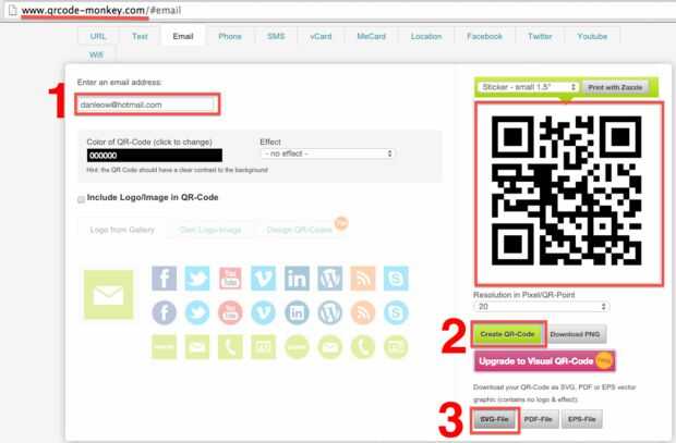 Sólo una nota, no quiero generar código QR demasiado complicado porque creará cajas muy pequeñas que pueden no poder 3D impresión. También depende de qué impresora 3D tiene. Por lo tanto, puede tratar de simple código QR como correo electrónico, nombre o sitio web para empezar.