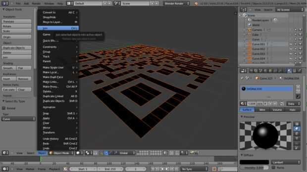 4. unir todas las curvas seleccionadas en uno haciendo click en 'Join' del menú 'Objeto' en la parte inferior (ver tercera imagen)