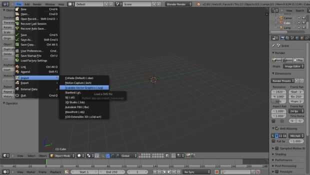 1. Abra su software Blender 3D e importar QR código SVG (como se muestra en la primera imagen). Si usted no puede ver el archivo SVG importar, descargar la última versión de Blender.