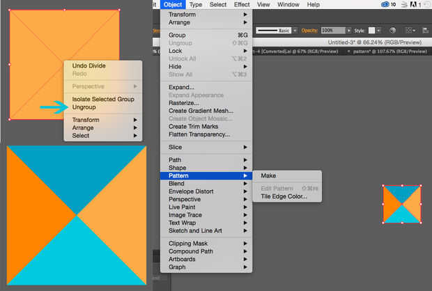- Seleccione todas las formas y vaya a objeto > patrón > hacer. Seleccionar opciones predeterminadas (o experimentar si eso es lo que quieres hacer :))