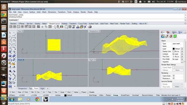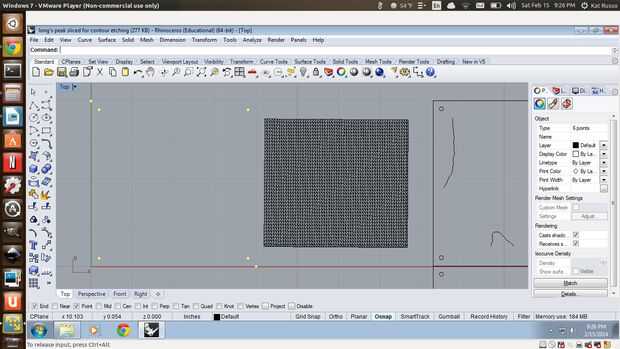 Crear dos puntos, uno en la parte superior izquierda de tu modelo y el otro en la parte inferior derecha y usar esos puntos para crear un rectángulo, que actúa como un cuadro delimitador. Este cuadro será el tamaño de cada pieza de acrílico. (Puntos visibles en la imagen 1) Centro de su paisaje por consiguiente. En la imagen 1, he no todavía pasé mi paisaje para que el fondo es a Z 0.