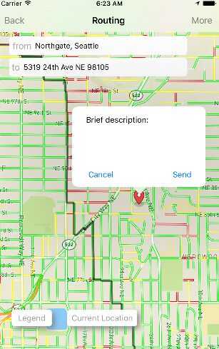 A veces, los usuarios puede datos de informe a los desarrolladores, notificándoles que los datos mostrados en el mapa están inexacto o anticuado. Para ello, creamos una funcionalidad información básica que permite al usuario enviar un mensaje al desarrollador.