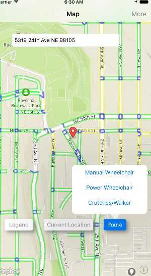 AccessMap está dirigido a usuarios de movilidad reducida, pero hay varios distintos grupos de usuarios dentro de este grupo principal más grande cuyas necesidades nos gustaría abordar. Para hacer nuestra aplicación más adecuado a cada tipo de usuario, dejemos que los usuarios puedan elegir qué tipo de función se usa para calcular su ruta desde una ubicación a otra.