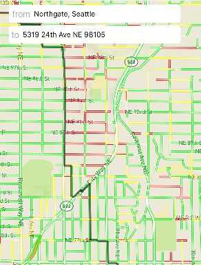 En el lado del código, realizará el texto entrado en los campos de dirección de inicio y fin y convertir estas en coordenadas usando un GeoCoding API (consulte este post para aprender cómo: http://stackoverflow.com/questions/24706885/how-ca...