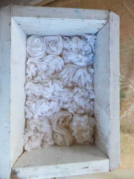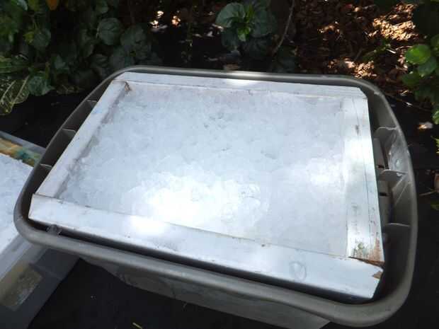 Paquete de hielo encima de la tela. Usted puede experimentar con diferentes tipos de hielo; cubos, trozos grandes, hielo y nieve incluso serán todos los resultados de rendimiento diferentes.