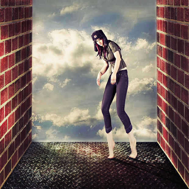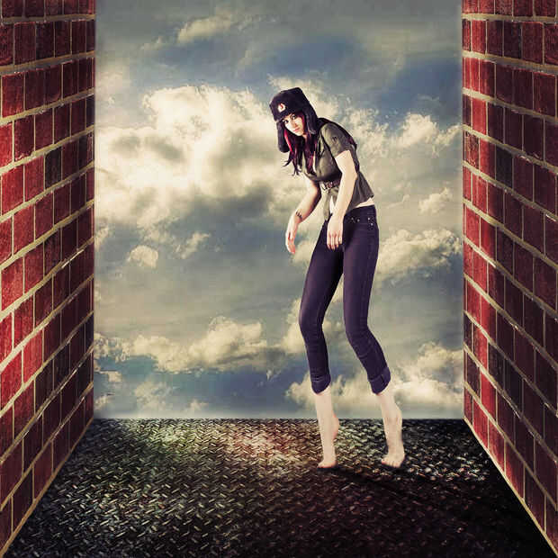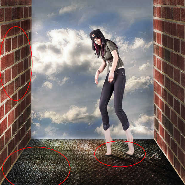 Empecé con los ajustes de iluminación y sombras. Son muy sutil, pero sin ellos, hay una gran diferencia. Sus pies parecían que ella era clase de flota sobre el suelo en lugar de permanente en él, y la fuente de luz en la izquierda de la pared y el piso bastante no coincide con la dirección que se estaba viniendo en su cara. Otra vez usé dodge y burn para fijar estos.