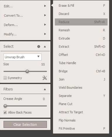 Nota: Como indica su nombre Meshmixer, este programa se centra en la edición de malla. La función Reduce esencialmente aproxima a la geometría del modelo 3D reduciendo el número de polígonos en la malla. Esto se utiliza tradicionalmente para reducir la calidad de la malla con el fin de reducir el tamaño del archivo y la complejidad, pero más recientemente se ha utilizado como alternativa estética!