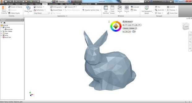 Ahora para la diversión parte! Podemos cambiar el aspecto de la pieza. Para encontrar la herramienta de aspecto , elegimos las herramientas tabla clic en la rueda de color trae la herramienta de selección de aspecto . Opté por titanio pulido material de calidad reflexiva y agrega un tono azul con la rueda de color.