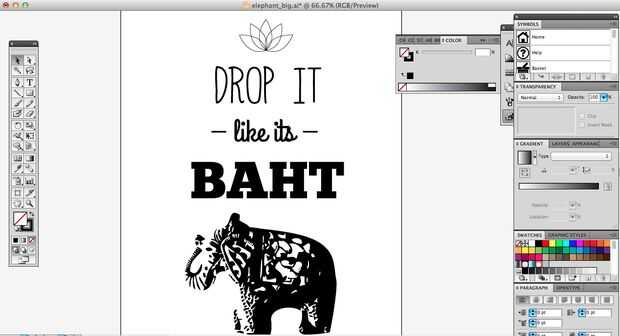 Para el elefante, una foto real de un elefante decorativo que me ha gustado, rastrear el vivo lo (Editar--> Calco). Parecía bastante duro, así que tuve que luego utilice la herramienta Selección directa (la flecha blanca) y editar los puntos de anclaje (el blanco cajitas que demuestran para arriba) hasta que tenía la forma de un elefante me ha gustado mucho.