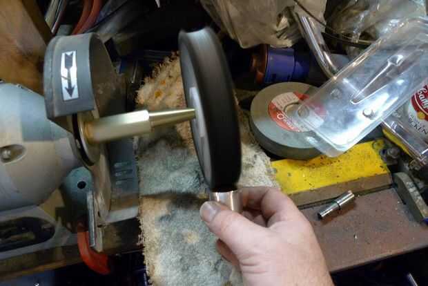 Si tienes una mejora, el proceso es mucho más rápido. Frote la pieza con arena de grano luego 1200 600, luego use un buff de sisal para cortar y finalmente un buff paño para terminar. Como antes, limpie la parte con acetona o similares entre los granos.