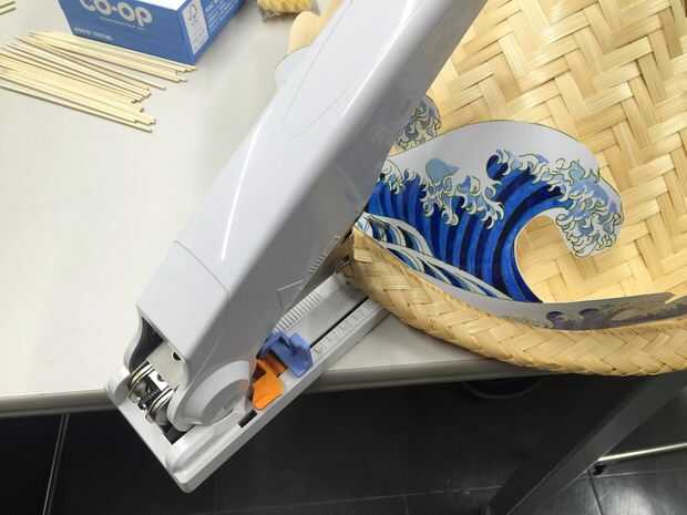 Elegimos un papel ligeramente elástico del rodillo de la impresión, porque queremos que las olas del mar al undulate ligeramente en el sombrero de Junco, que desfilan en la fiesta.