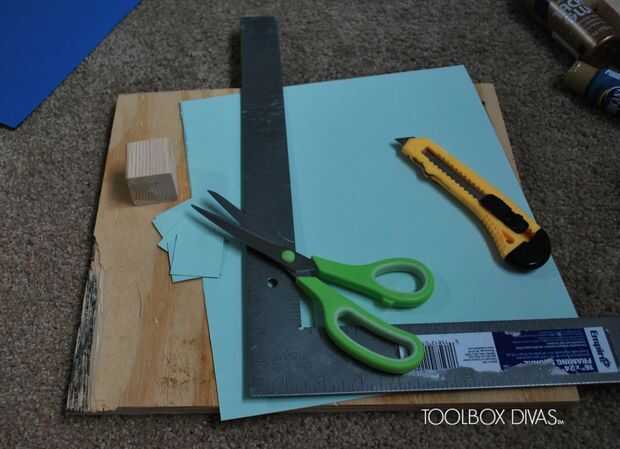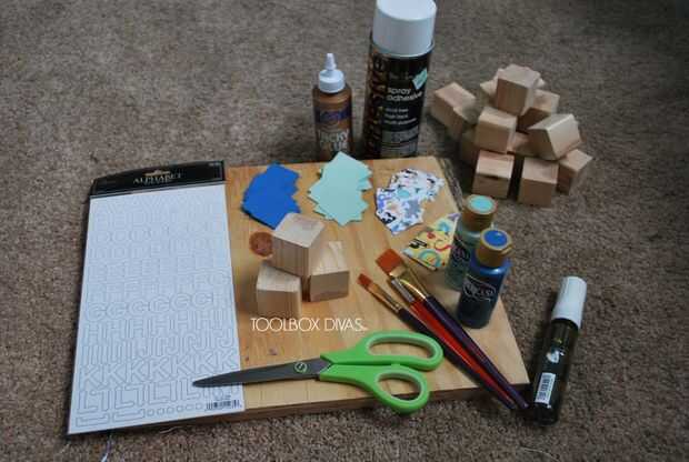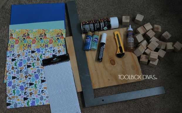 Ahora es el momento de cortar todo el papel de scrapbooking al tamaño que puede ser pegado a los bloques.