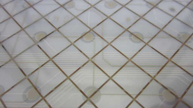 Localizar los contactos de la tecla que desea poder activar con un interruptor externo. Teclas más grandes como la barra de espacio pueden tener más de un contacto.