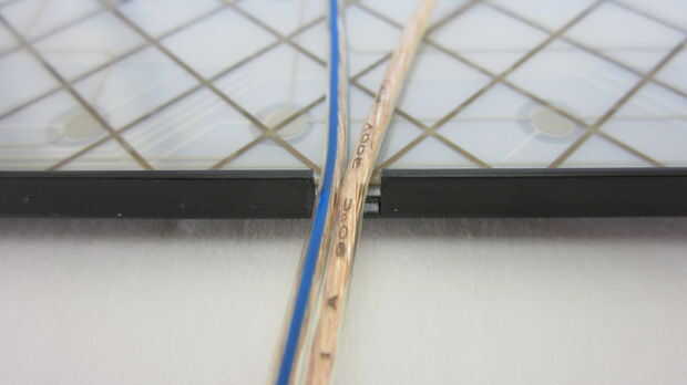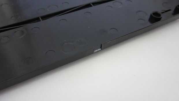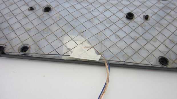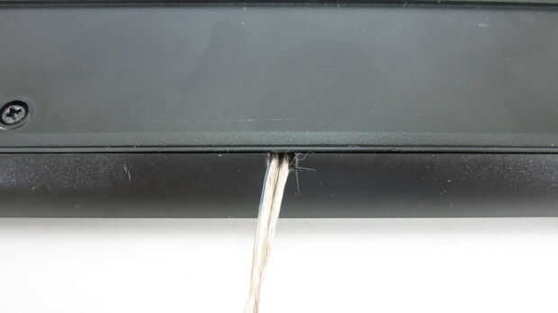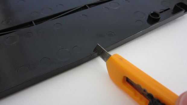 Para rutear los cables fuera del teclado, debemos cortar una ranura en la carcasa. Mantenga el cable hasta el borde de la caja donde desea la ranura y marcar los bordes. Luego utilice un cuchillo afilado para cortar una ranura para el cable en el lado del teclado.
