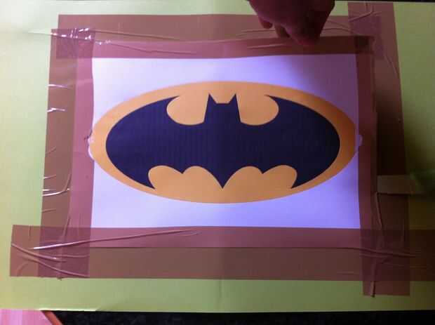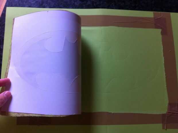 Pegar la impresión en el cartón con la cinta adhesiva. Luego pegar la cartulina sobre la mesa y trazar los contornos de tu impresión con un bolígrafo o un cuchillo. Ahora quítate la impresión y ves los contornos en la cartulina.