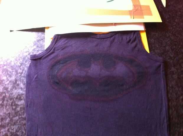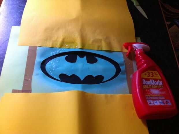 Spray en el detergente (o rociar con una esponja y aplicar sobre la camisa) y asegúrese de que, su plantilla está muy cerca de la camisa, por lo que el detergente no puede ser rociado accidentalmente bajo la plantilla. No necesita mucho detergente, así que empezar con poco y aplique más adelante si es necesario. Se todos sangran, si utilizas demasiado. Quitar la máscara inmediatamente después de la pulverización. De lo contrario empapará el detergente. A veces puede de un efecto, como lo hice aquí. He intentado crear una especie de imagen de graffiti. PRECAUCIÓN: Use guantes mientras usted rocía!