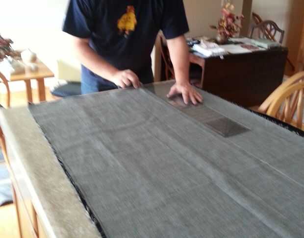 Para nuestra situación cosieron dos restos y luego mide el ancho y largo de la doblado en mitad cubierta... necesitábamos la cubierta 51" de largo y 21 1/2 de ancho. Medirlos de esta manera me permitieron cortar las dos capas al mismo tiempo.