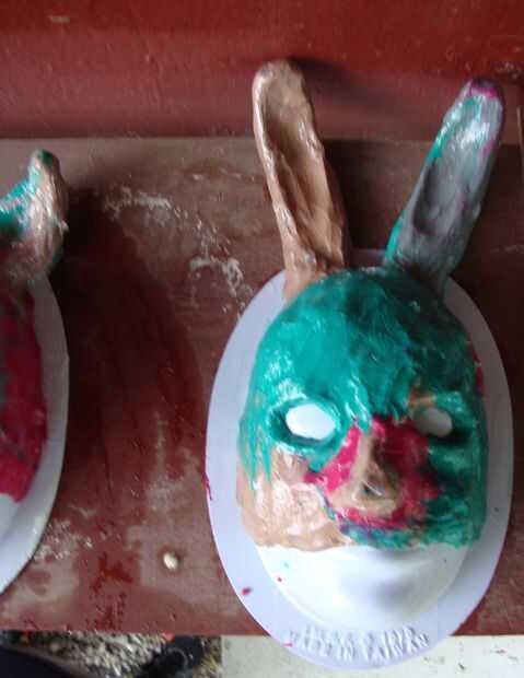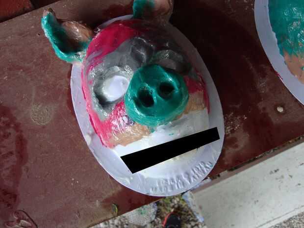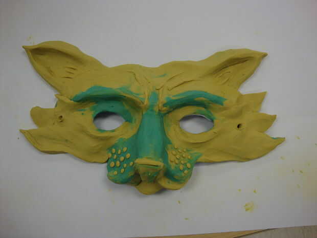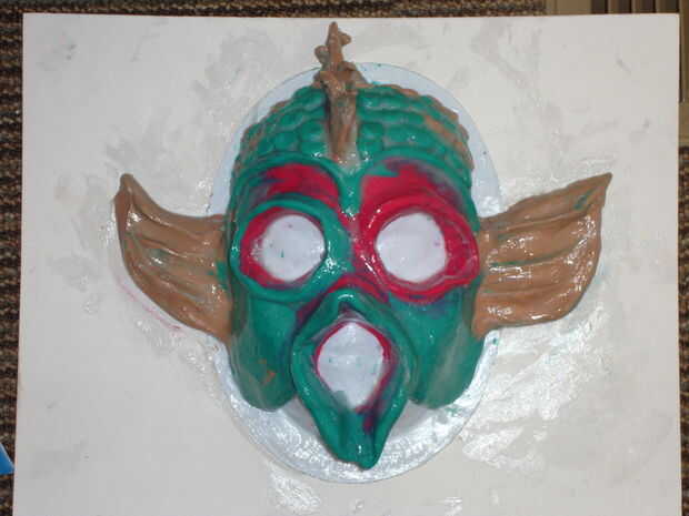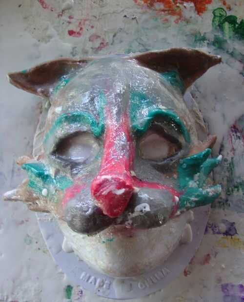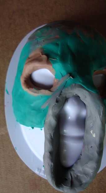 Una vez terminado el molde de su máscara, tomar vaselina y frotarla por todo su máscara. Si está utilizando un formulario que tiene puntos de vacíos, siga adelante y ponga la vaselina hay así. La vaselina le permitirá desmoldar el papel maché. No hacer este proceso hará que se pena más adelante como se raspa arcilla de la mascarilla. (confía en mí que lo hice una vez por error)