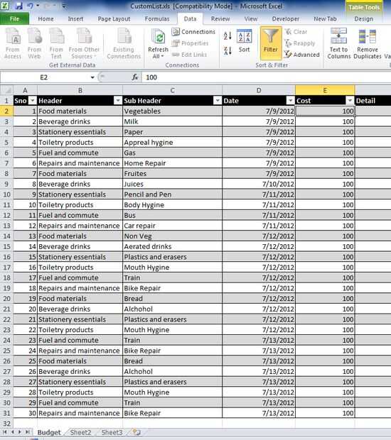 Crear Custom sublista en Excel (cambios de sublista según Rúbrica) (4 / 4 paso)