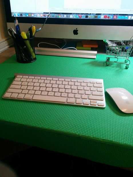 Me di cuenta podrían tener otros propósitos y una tal aplicación es utilizarlo como una cómoda almohadilla de escritorio. La idea surgió cuando yo estaba escribiendo con el viejo diseño con teclado en una mesa de hardtop y encontré que durante largos períodos de escribir mi muñeca se sentiría la dureza de la superficie de trabajo. Al principio pensé en comprar los forros acolchados que sentarse justo debajo de la muñeca, pero luego surgió esta idea. Estoy escribiendo este proyecto en mi plataforma de escritorio nuevo y se siente muy bien!