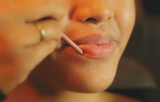 Utilizar el trazador de líneas del labio con el lado puntiagudo hacia abajo (como se ve en la foto). Esto hace más fácil evitar líneas torcido/desigual; incluso puede mover los labios a lo largo de la línea, en lugar de líder con el trazador de líneas del labio y la mano.