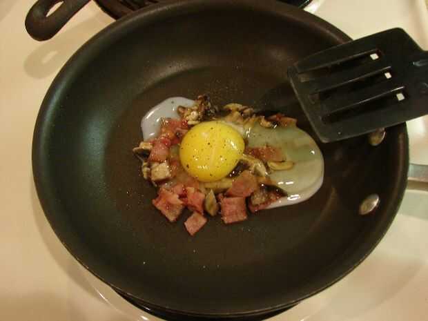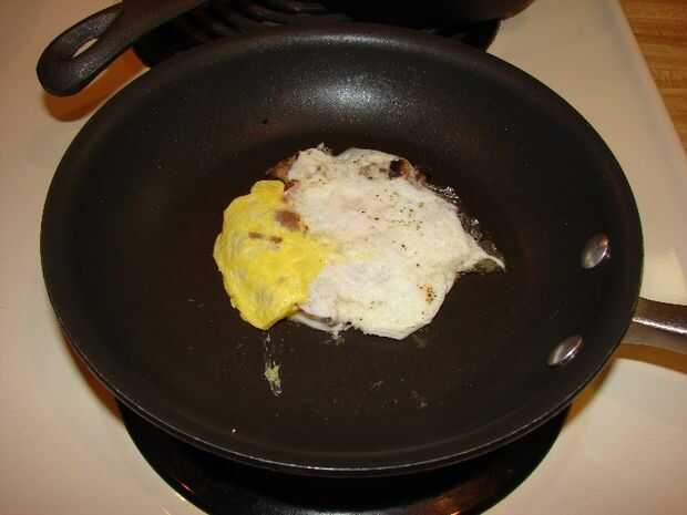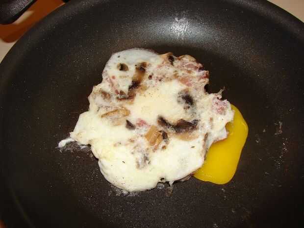 Cuando el huevo está suelto en sartén, voltear y continuar la cocción.