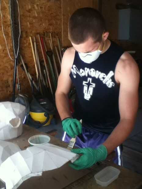 Este es un paso bastante sencillo, vas a tomar tu resina de fibra de vidrio y cubrir ambos lados de las piezas de pep con él. Tomar un recipiente y vierta alguna resina, luego agregue algún endurecedor. (Para una onza de resina uso unas 10 gotas de endurecedor) Usando una brocha Esparza la mezcla alrededor de toda la pieza de la capa. Hacer el interior primero luego el segundo exterior, que parece ayudar para no deformar. Si la pieza no está en la forma exacta que desee utilizar alguna cinta para sujetar en su lugar mientras que la seca la resina, después de la resina se seque llevará a cabo su forma. ** IMPORTANTE ** Asegúrese de que la temperatura está por encima de 60 grados cuando usted solicita la resina, si no curará nunca completamente. ASEGÚRESE DE USAR EL RESPIRADOR. Fibra de vidrio resina desprende vapores tóxicos, no matarse.