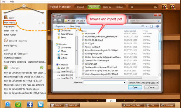 mayoría de los usuarios quiere convertir PDF archivos a Flash flip libro. Es realmente maravilloso subir archivos PDF a página web o añadir PDF a ciertos dispositivos portátiles como una revista digital con efecto página. Sin embargo, puede obtener d