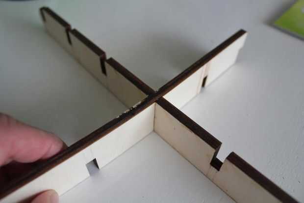 Tomar las dos partes que fija en la pared en el paso 2 y montar el estante entero con una cantidad adecuada de pegamento. Aplique suficiente pegamento en las ranuras. No importa si los poros hacia fuera cuando pones las piezas juntas. Pero no olvide que debe quitar las gotas de pegamento con un paño húmedo, se mancha en la madera cuando se seca.