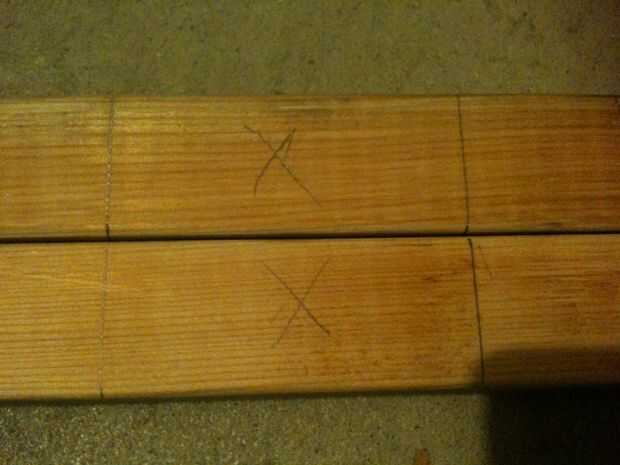 · Colocar todo en una tabla, verificar todas las dimensiones, entonces transferir cada marca a todas las piezas samegroup a la vez poniéndolos junto lado a lado con los extremos alineados.