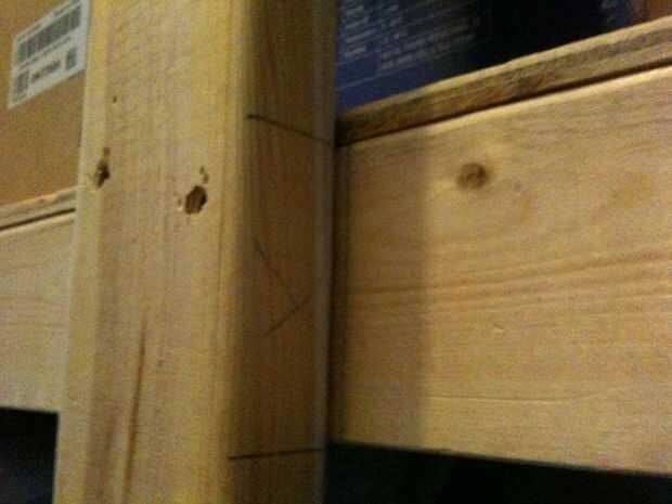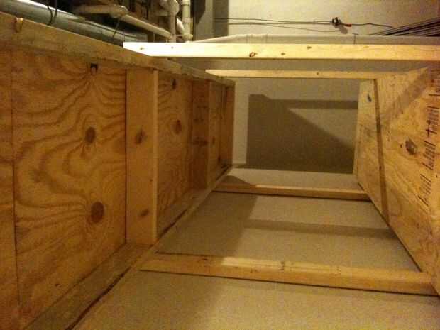 · Ahora puede levantarse la unidad entera es 4 patas verticales. Compruebe la Plaza midiendo diagonalmente. Si todo cuadrado (que estaba por suerte), enciende su clavadora o pistola trabarse abajo del tornillo.