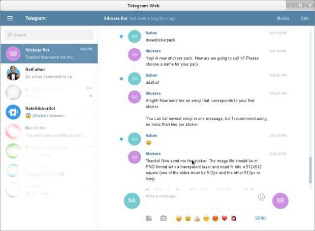 Con eso ya tendremos iniciado el paquete, el robot ahora nos pedirá el emoji correspondiente al etiqueta perzonalizado con el fin de identificarlo para posteriores ediciones, yo elegido el permiso de :D (sonrisa) para el Adabot, recuerden ustedes pueden elegir el sea mas harmonización una pegatina de su, despues de eso nos pedirá la imagen para el etiqueta hay enviar la imagen con el botón de ARCHIVO ADJUNTO o si ENVIAR ARCHIVO lo enviamos con el botón de imagen no sera aceptado, si todo salio correcto el robot nos notificara que a sido agregado con éxito el adhesivo.