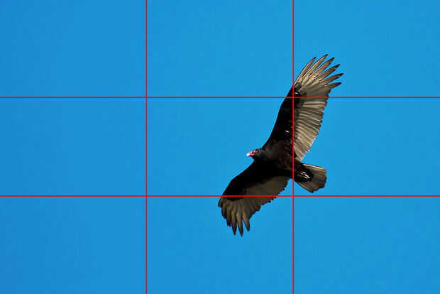 Cuando se utiliza la regla de tercios, que desea mantener al tema en o cerca de las 4 intersecciones en el gráfico. Esto le dará una fotografía mucho más interesante y conducen al espectador en el resto de la foto. En el ejemplo que utilicé, typeography se puede poner en el espacio negativo de la imagen y el pájaro fácilmente puede llevar al espectador a la copia.