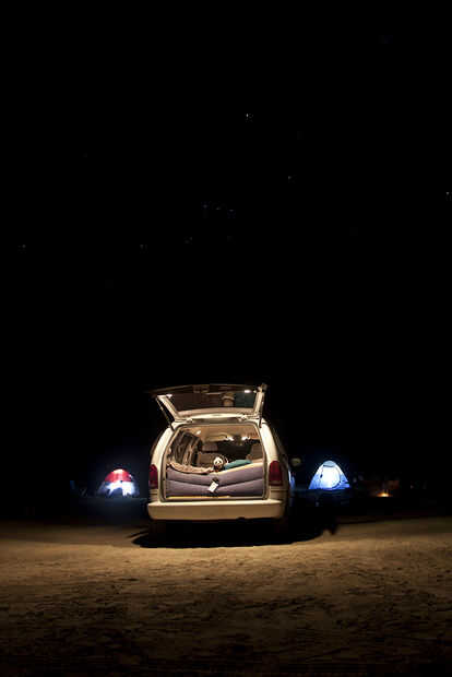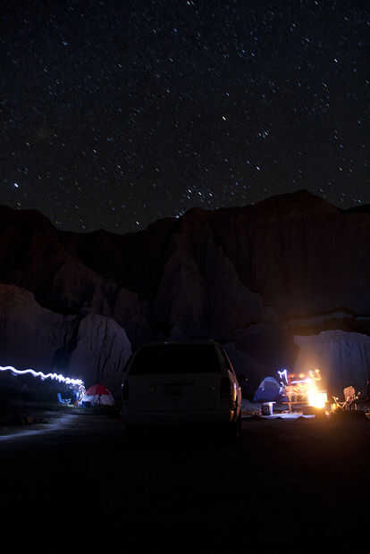 * En este ejemplo en particular que estoy mostrando, en realidad creé algunas de la luz en la montaña para reducir el tiempo de exposición para la tierra media. Para hacer esto, yo tenía un amigo de pie detrás de la camioneta fuera de la vista con una linterna brillante y hacia atrás en la montaña para darle algunas sombras y alegrar la exposición.