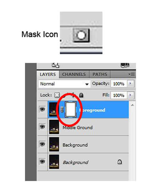 Si algo falta de una parte de su fotografía y le gustaría volver a icono simplemente golpear la "máscara" en la parte inferior de la paleta de capas. Esto hará que una caja blanca surge al lado del icono de imagen en la capa en que están. Asegurarse de que esa caja blanca es seleccionada, usted puede pintar con negro o blanco con la pintura herramienta del cepillo y traer de vuelta cualquier detalle olvidado se perdió durante la mezcla original.