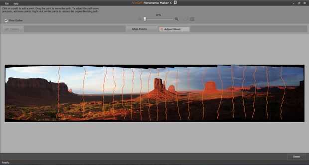 Descargar el "Monument Valley (todos los archivos)"-archivo zip para todos 30 imágenes. Instalar el software PhotoStitch y pruebe usted mismo.